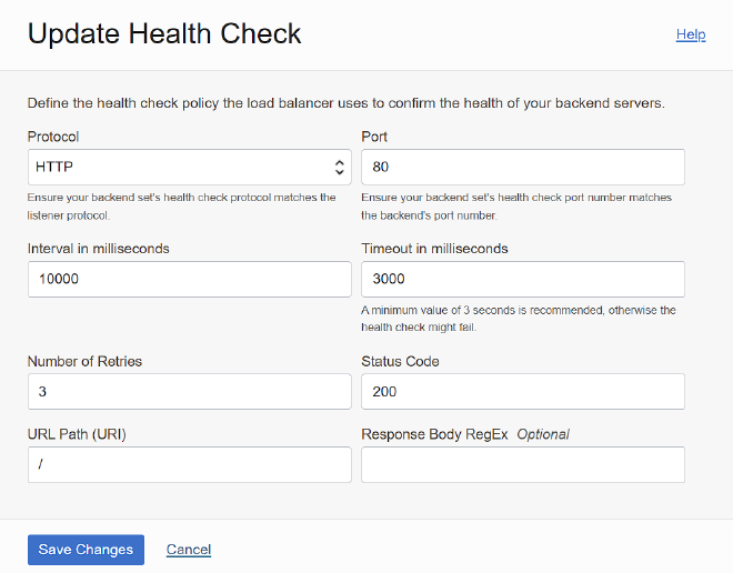 As a refresher, here is the default health check in a backend set: